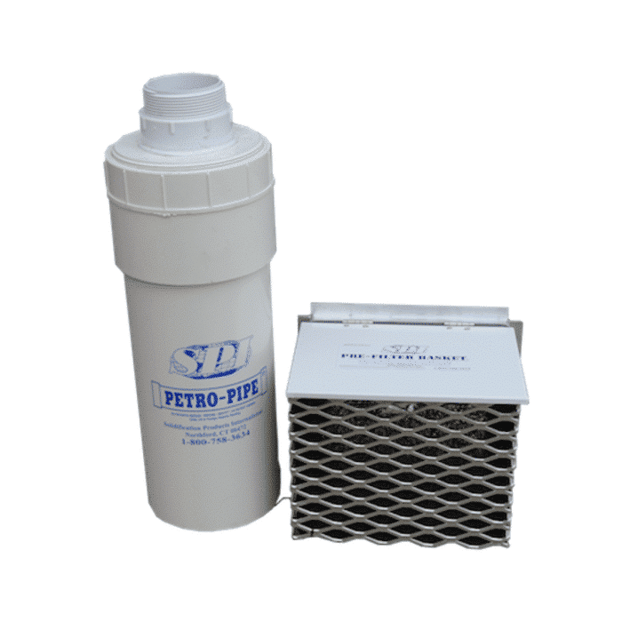 - Una gabbia di prefiltrazione PFB-0810 o PFB-1012 o PFB-1224 per PETRO-PIPE® può essere installata (come opzione) a monte del filtro nel serbatoio di ritenzione per rimuovere le impurità dall’acqua ed evitare che il filtro si intasi troppo rapidamente. La gabbia di prefiltrazione PFB viene sempre installata nel serbatoio di ritenzione nel punto in cui l’acqua entra nel filtro.
